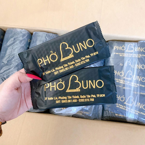 Tương tự Như Anh Quán, mẫu khăn ướt của Phở Buno cũng sử dụng màu đen sang trọng và lịch sự. Thế nhưng cả hai mẫu khăn này không hề gây nhầm lẫn, chỉ cần nhìn là khách hàng có thể phân biệt các thương hiệu với nhau.