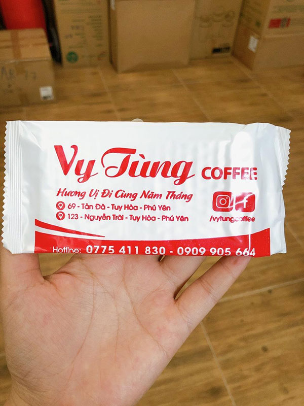Có thể nói, sự kết hợp giữa màu trắng và màu đỏ luôn tạo được hiệu ứng thị giác cao. Vậy nên không bất ngờ khi mẫu khăn ướt của Vy Tùng Coffee lại nhận được đánh giá cao từ khách hàng đến vậy.
