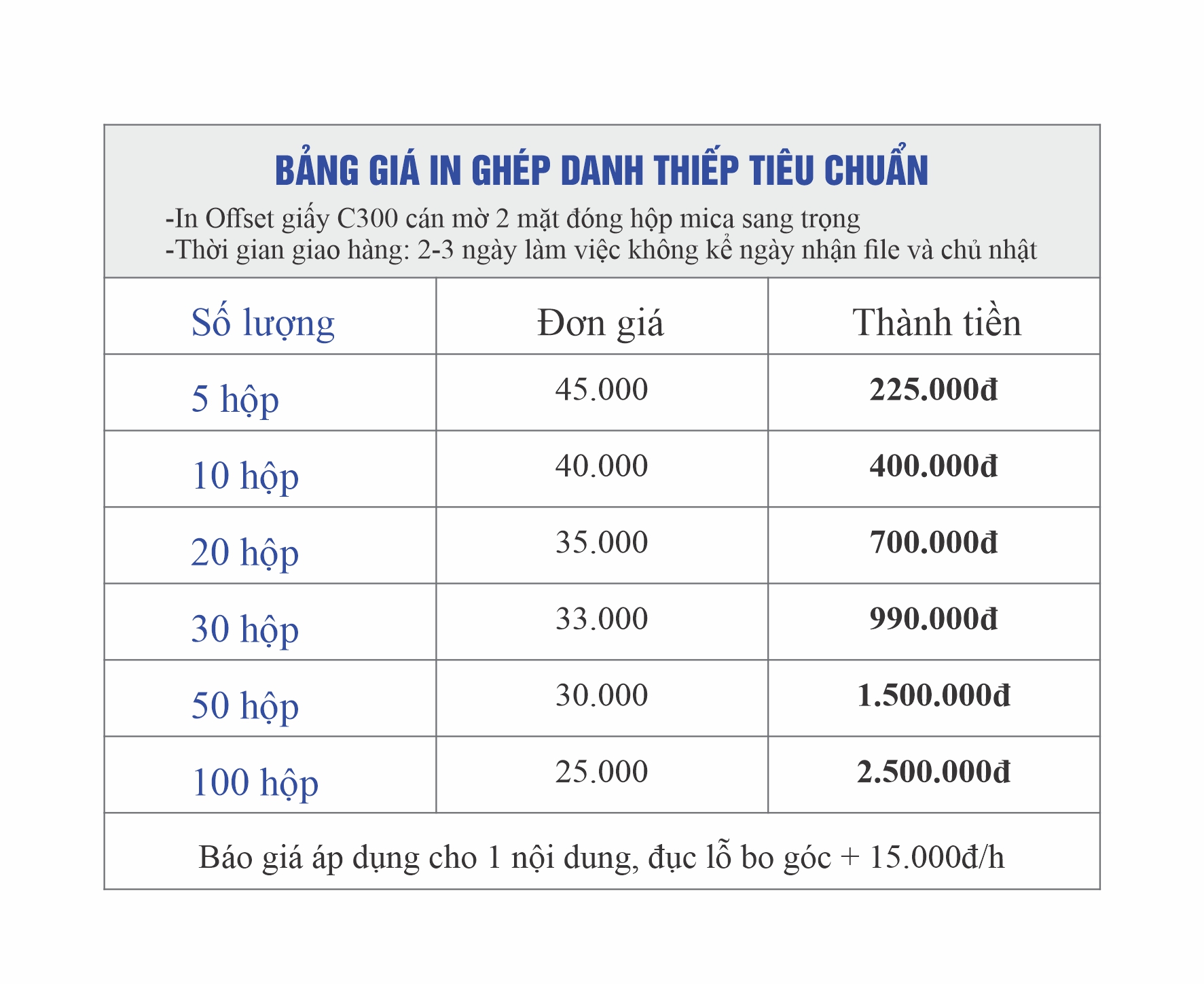 – Số mặt in: 2 mặt