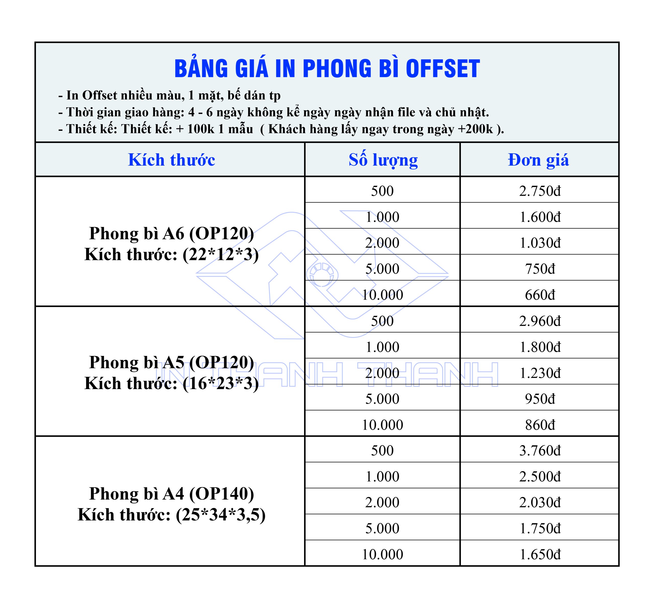 ► Kích thước thành phẩm của in bao thư nhỏ sẽ là 12x22cm với nắp bao thư cao 3cm.